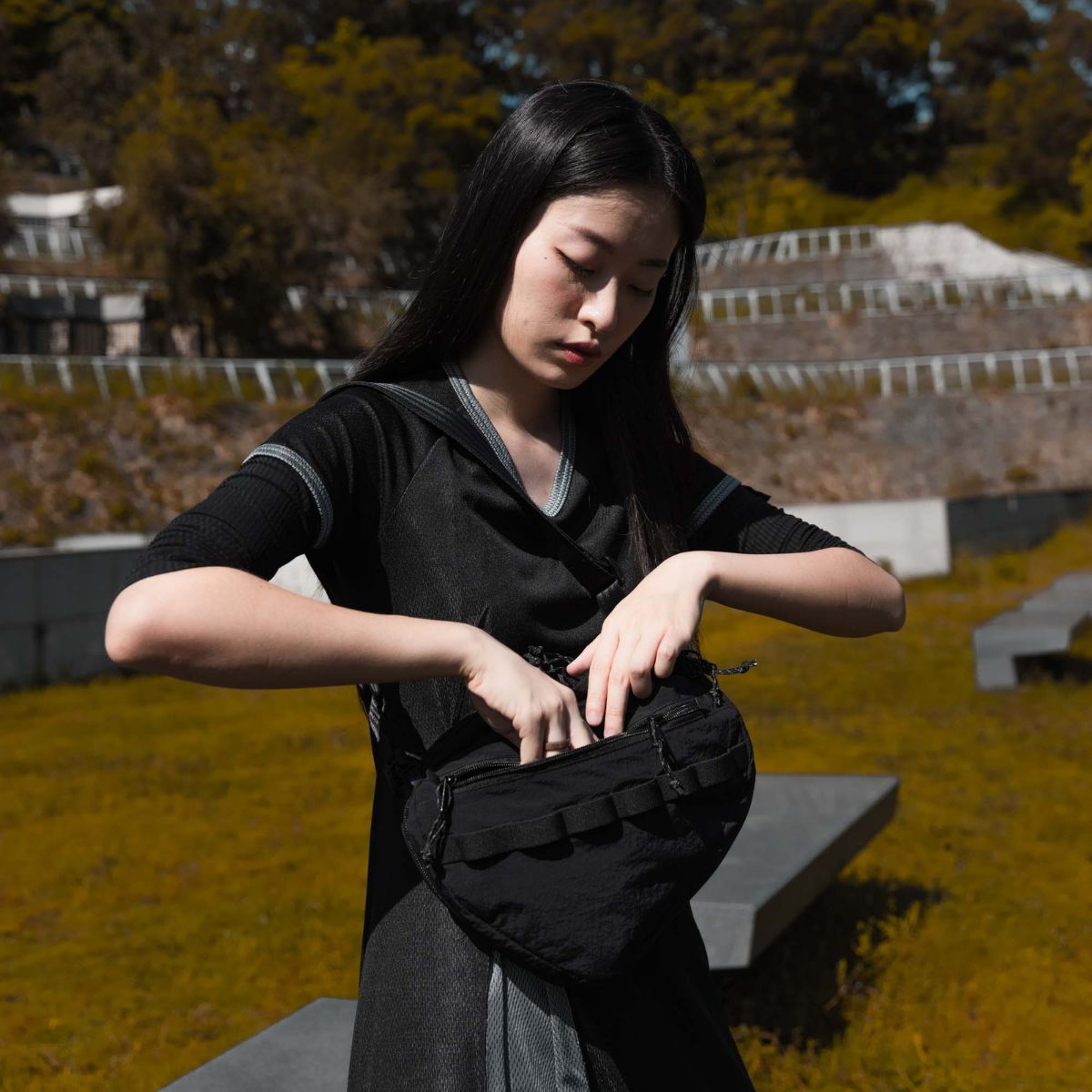This is a collaboration piece with HONG KONG's West Kowloon Cultural District - M Plus Museum, showcasing Architect Gary Cheng's vision. The vest offers a one-of-a-kind design, seamlessly blending the functionality of a shoulder bag with the versatility of a tactical vest. Swap it effortlessly to suit various needs and occasions.